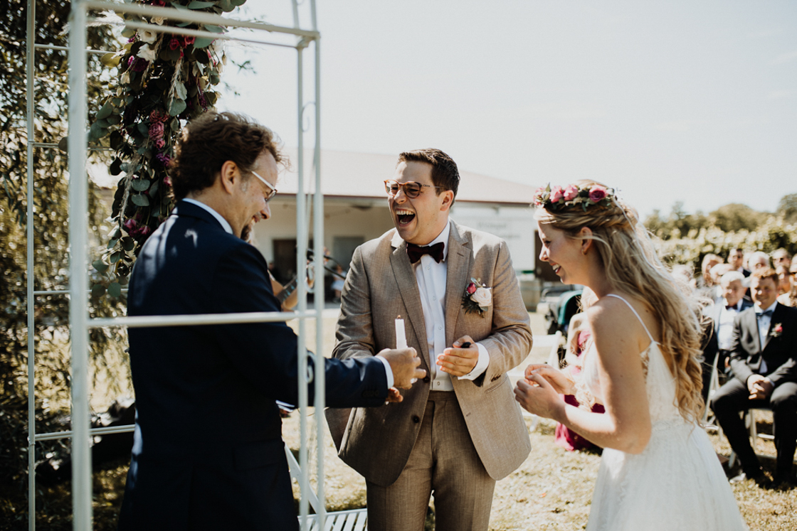 Caro & Sebastian leben im Norden Deutschlands und entschieden sich ihre Hochzeit im wundervollen Kaiserstuhl zu feiern. Das Schloss Burkheim bietet einen wundervollen Aussenbereich mit herrlicher Aussicht.