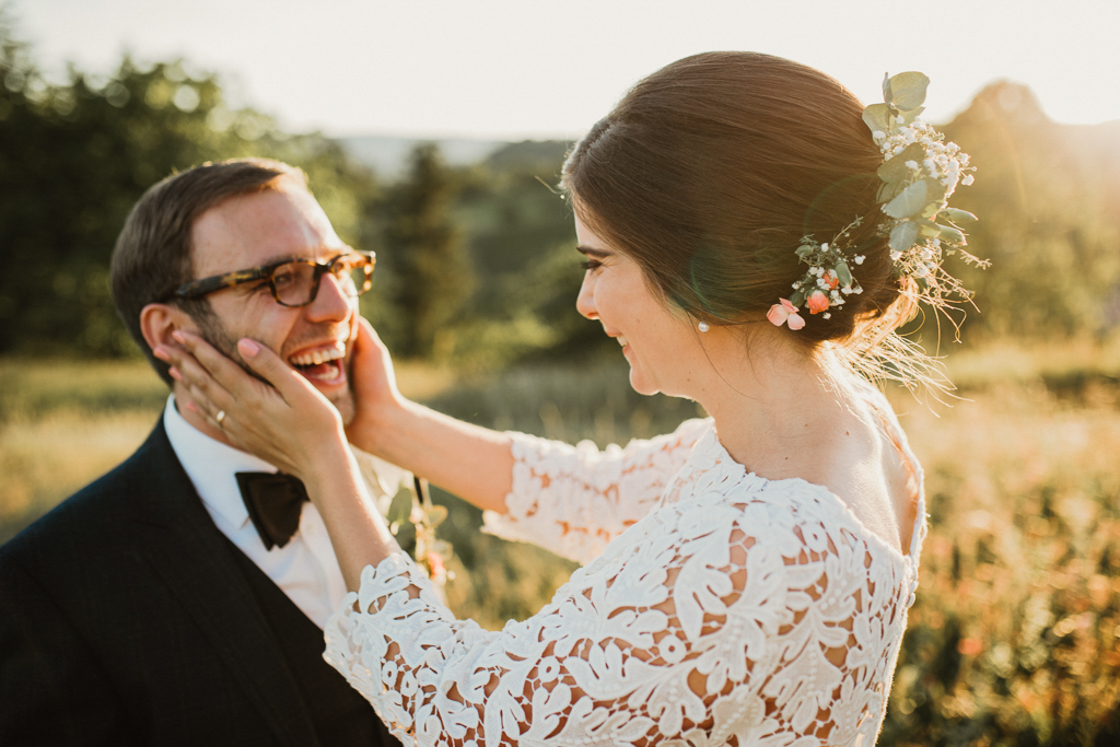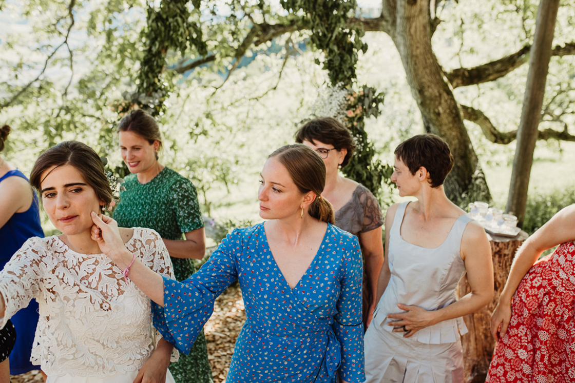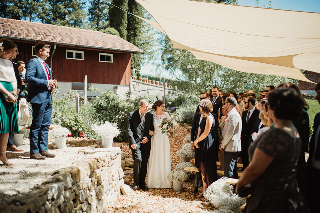 Die Hochzeitsreportage begann mit dem Getting Ready von Nadine in der Villa27, ein schnuckeliges Cafe mit vielen liebevoll eingerichteten Räumen. Danach ging es auf den Hof La Famiglia Fluhberg in Sissach. Die Trauung und die darauf folgende Feier waren trotz glühender Hitze der absolute Hammer.
